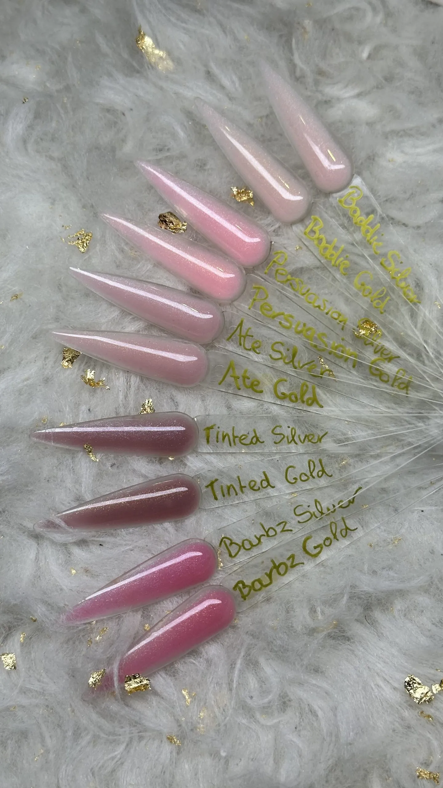 10 kleuren Builderz, de volledige Shimmer collectie. Hierdoor heb je elke (huids)kleur in huis en voor iedere klant wat wils! 5 verschillende kleuren met twee versies; zilveren en gouden glitter. Hierdoor heb je voor iedere klant ook nog eens de optie. Welke sieraden dragen ze? Wat past beter bij hun ondertoon? You got it!